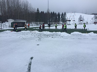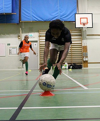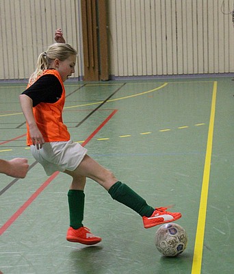 Alva Pettersson som springer mer och över dubbelt så stora spelare har