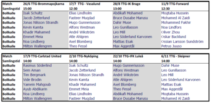bollkallar till Team Thorengruppen vid deras hemmamatcher i Division 1. Vi har tagit fram ett schema, med start den