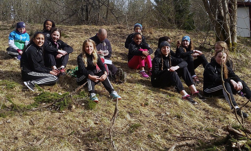 Efter matchen blev det fika, dusch och ombyte (vilket funkar jättebra, tjejerna har grymt kul i omklädningsrummet) för att fortsätta upp på Gammlia för geocaching och olika uppdrag som skulle utföras. Favorituppdraget var så många kullerbyttor som möjligt på en kort sträcka.