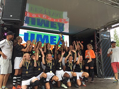 Äntligen fick tjejerna vinna i UFF efter ett antal tidigare hållplatser. Ett gruppspel där vi blandar ganska mycket i värmen leder till ett slutspel där vi i finalen spelar riktigt bra. Många glada miner bland både tjejer och ledare.